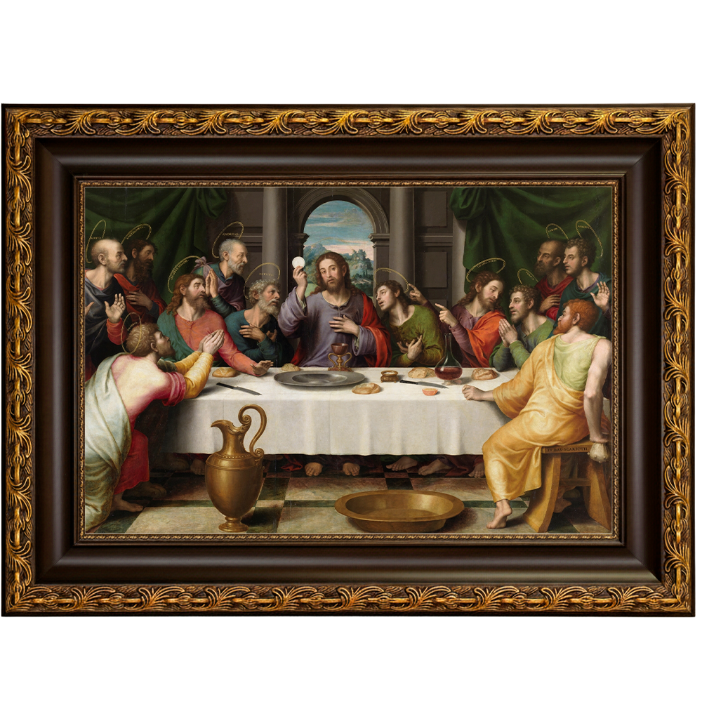 Nesta interpretação renascentista de A Última Ceia, Juan de Juanes apresenta o momento solene em que Cristo anuncia a traição durante a refeição com os apóstolos. A composição é marcada pelo equilíbrio clássico, pela simetria e pela clareza narrativa — características centrais da obra do artista, fortemente influenciado pelo Renascimento italiano.