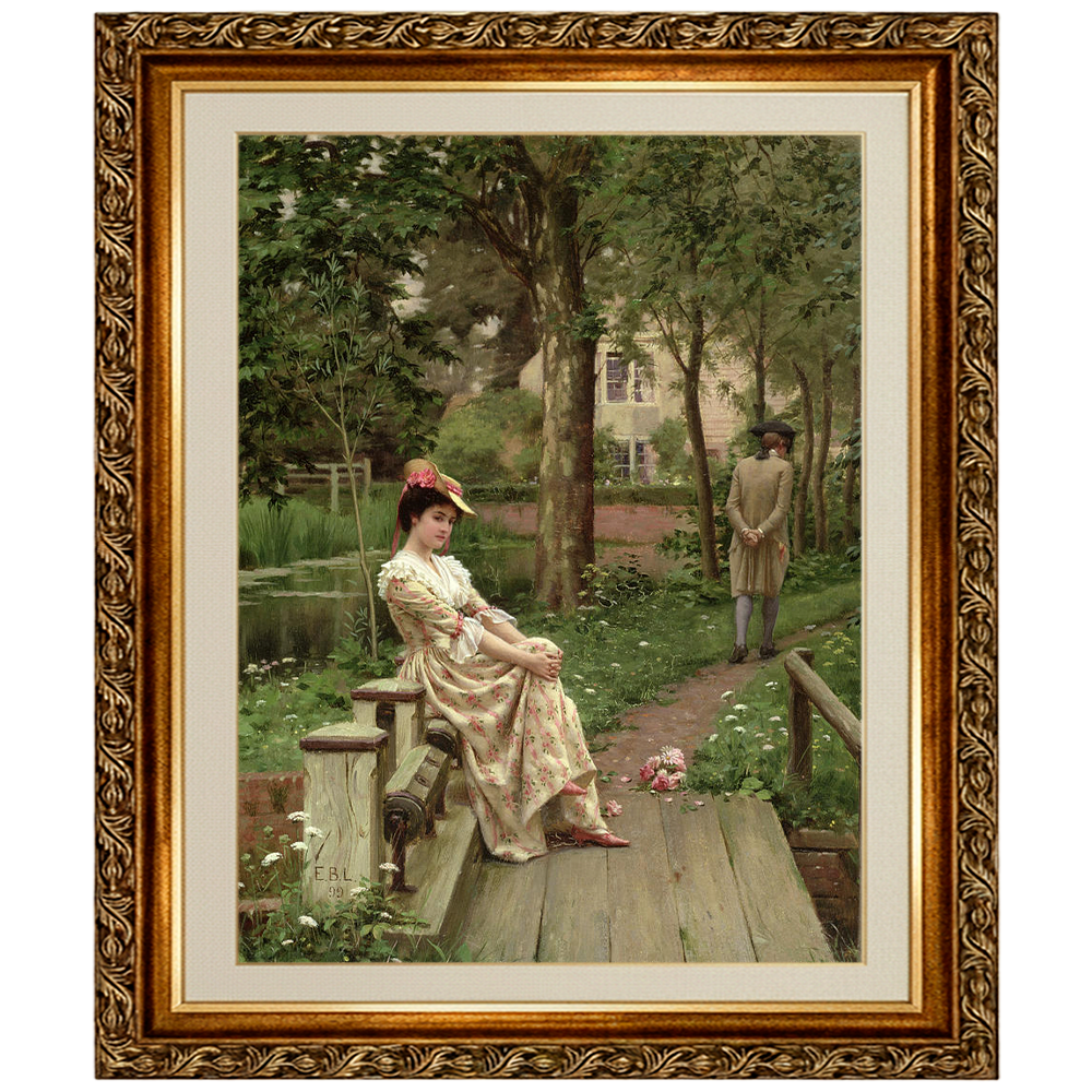 A composição cria uma narrativa sutil e poética, típica do romantismo tardio, onde gestos simples e expressões discretas carregam profunda carga emocional. A harmonia entre natureza, arquitetura e figuras humanas, aliada à paleta suave e aos detalhes refinados, faz desta obra uma peça atemporal. Ideal para ambientes que valorizam elegância, sensibilidade artística e histórias contadas através da arte.