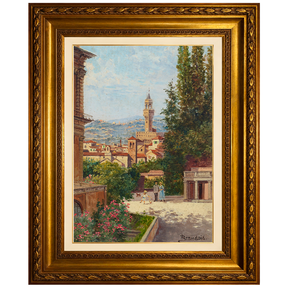 Como é típico da obra de Antonietta Brandeis, a pintura combina rigor arquitetônico com uma sensibilidade poética, transformando a vista urbana não apenas em um registro fiel, mas em uma celebração visual da beleza histórica e paisagística de Florença.